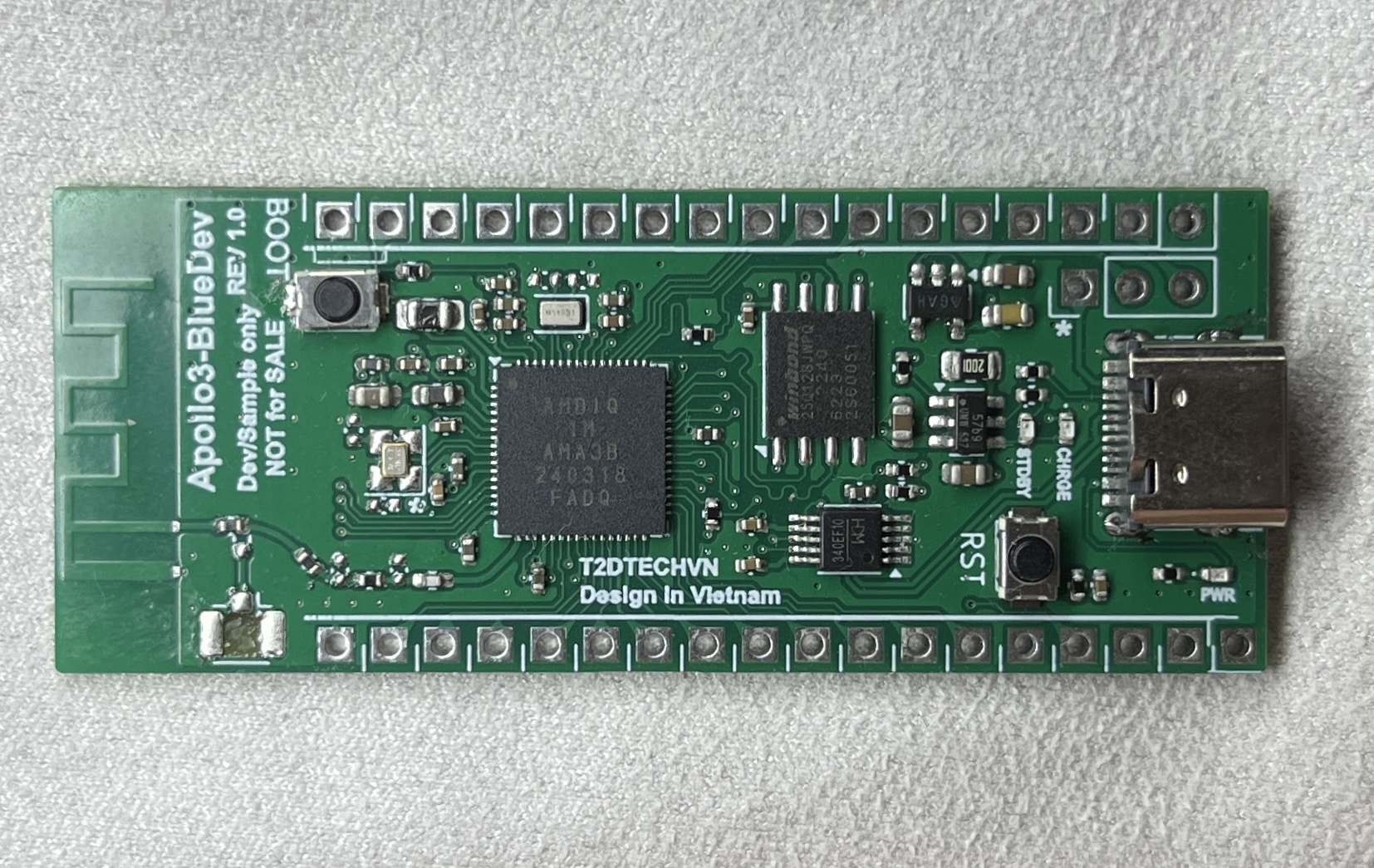 - Compact, ultra-low-power Apollo3 Blue EVB for fast prototyping of BLE 5, sensor, wearable, and battery-powered applications.